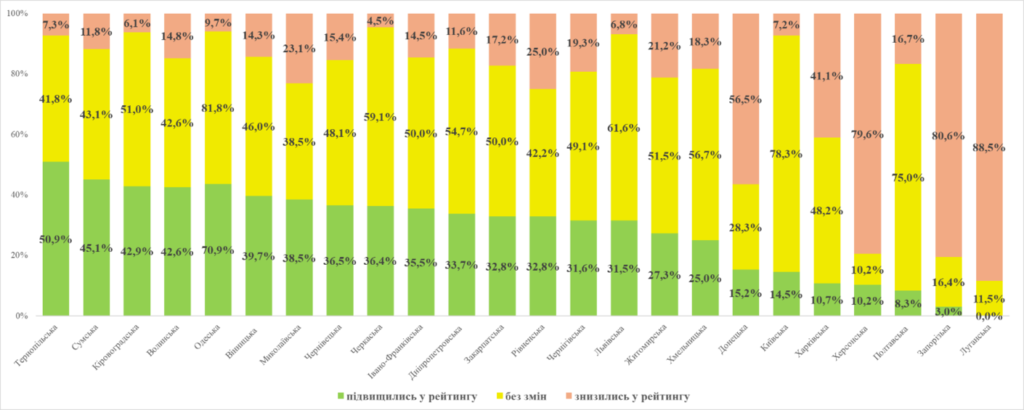 Частка територіальних громад, в яких у 2023 році змінилися рейтингові позиції, порівняно з 2021 роком