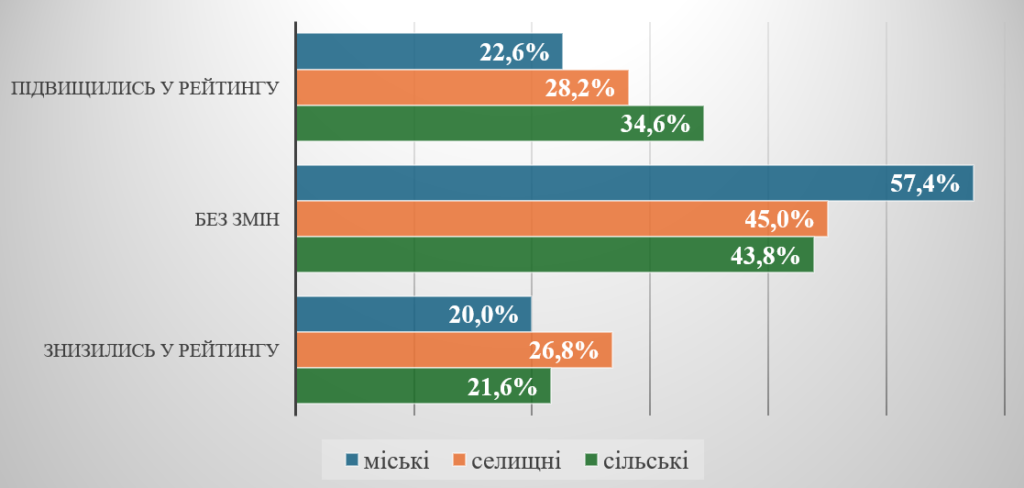 Динаміка змін рейтингових позицій громад за типами населених пунктів
